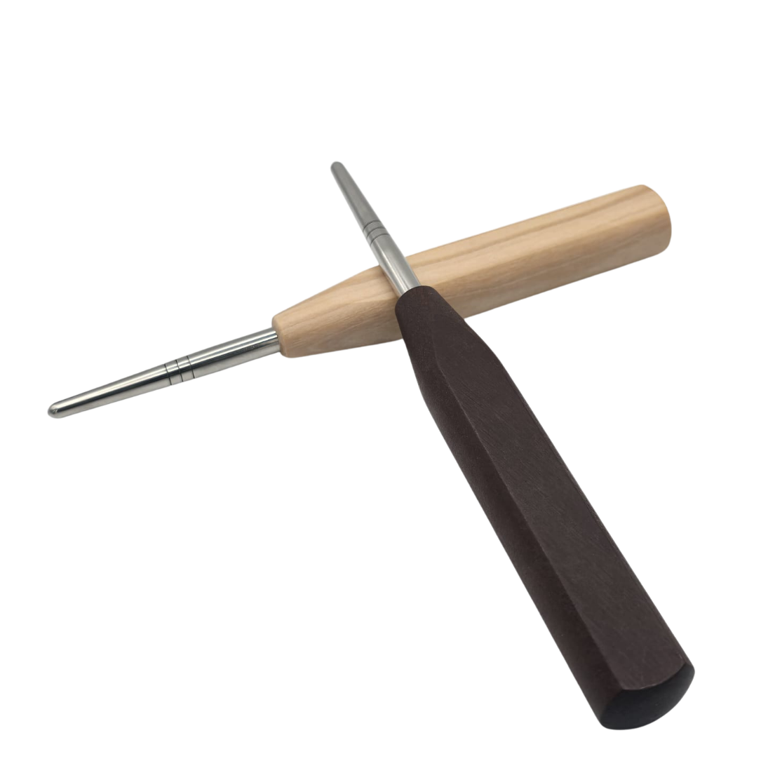 Acero inoxidable. Provisto con tres líneas de referencia para el control de la caña.